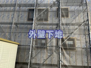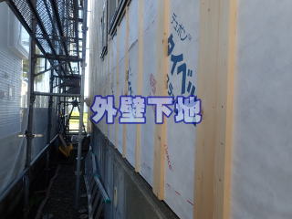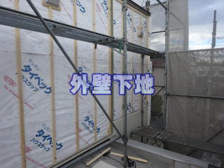 壁通気層設置 外壁工事は通気層を設置して施工します。