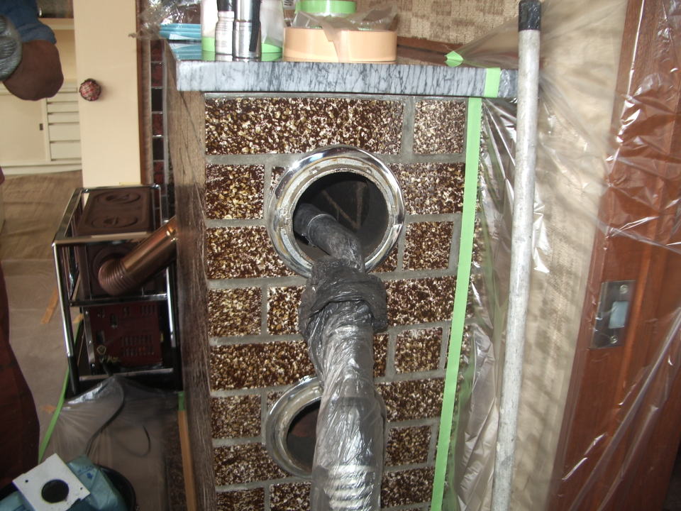 集合煙突からブラシを落とし煙突のすすを落とします。ペチカ内はブラシがけをしてすすを落とし、掃除機で吸い取ります。 5年から10年毎に行うのを推奨いたします。ススがたまると最悪、火災やストーブの不完全燃焼の原因となります。点検等お気軽にお問い合わせください。