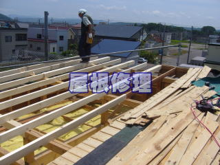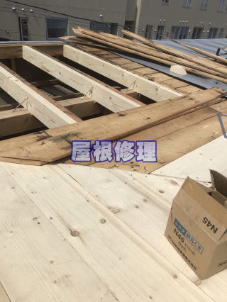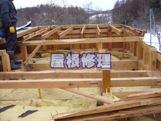 雪の重みで壊れてしまった屋根です。毎年の積雪によるダメージの蓄積で屋根だるきが折れてしまったり、母屋(角材)まで被害にあうケースがあります。雪下ろし・雪庇落とし等お手伝いできる事が有るのでご相談ください。
